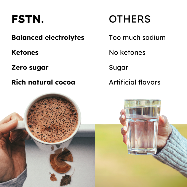 FSTN Chocolate Electrolytes Fasting Supplement – Crave Killer, Hydration & Energy – Zero-Sugar, Plus Ketones & Organic Cocoa.